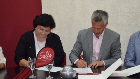 La firma del convenio. / Foto: Luis Cornu. El Gobierno de Salta acordó este martes promover emprendimientos gastronómicos de cercanía, que se integren al programa Km O, con certificación Slow Food, que implica que los restaurantes de la provincia puedan ofrecer a los turistas una gastronomía con identidad territorial, cultura e historia. “Hace unos meses […]